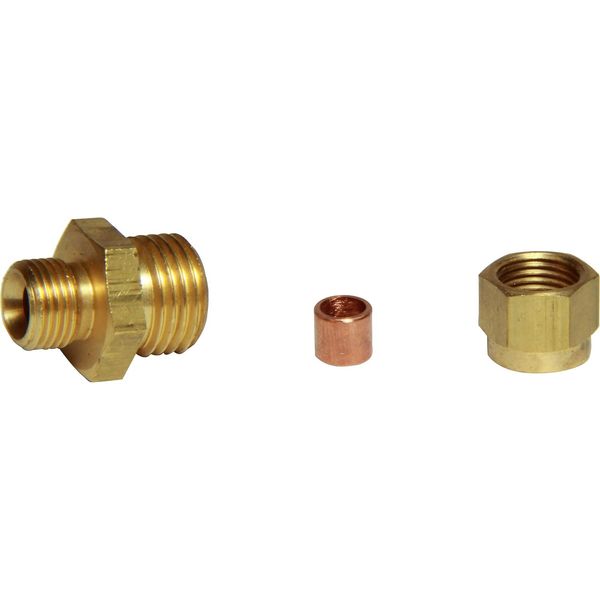AG male stud compression coupling constructed from brass, supplied with compression olive and nut. The compression union has a 1/4" BSP male thread one end and a 3/16" compression the other end.
