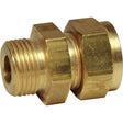 AG male stud compression coupling constructed from brass, supplied with compression olive and nut. The compression union has a 3/8" BSP male thread one end and a 3/8" compression the other end.