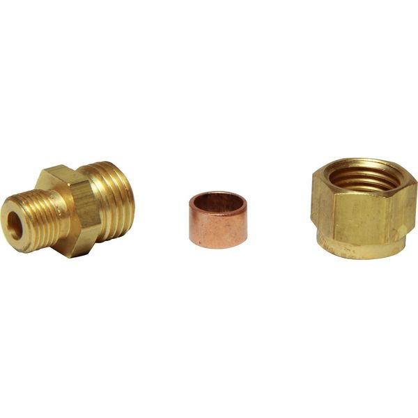 AG male stud compression coupling constructed from brass, supplied with compression olive and nut. The compression union has a 1/8" BSP male thread one end and a 5/16" compression the other end.