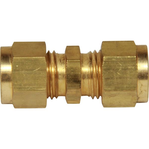 Compression pipe fitting to join together two compression tubes or pipes. This coupling features 5/16" and 1/4" compression fittings and is supplied with copper compression olives and compression nuts.