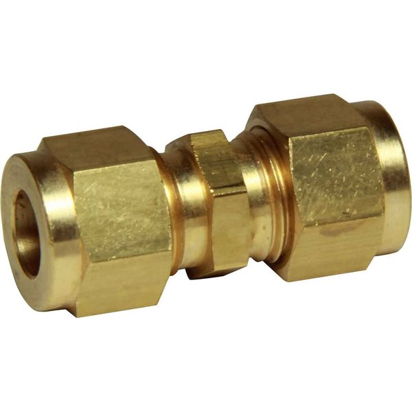 Compression pipe fitting to join together two compression tubes or pipes. This coupling features a 5/16" compression fitting each end and is supplied with copper compression olives and compression nuts.