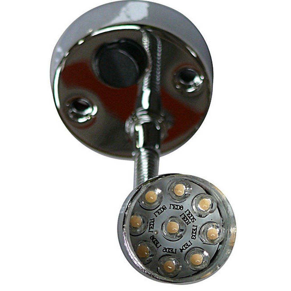 Swan neck light in polished Chrome. Complete with 9 LED lights and on/off switch. 5cm base x 15cm.