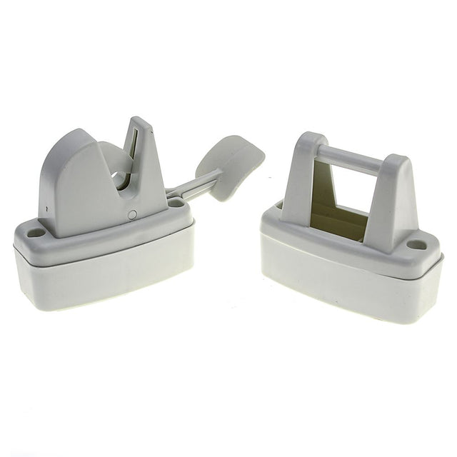 The trigger release door retainer is a heavy-duty retainer for domestic and caravan doors. Releasing the door is easy with the trigger release mechanism which can also engage the door with a simple and effortless push. Each kit is supplied with a spacer. Screwhole to screwhole measurement: 70mm.
