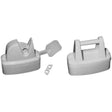 The trigger release door retainer is a heavy-duty retainer for domestic and caravan doors. Releasing the door is easy with the trigger release mechanism which can also engage the door with a simple and effortless push. Each kit is supplied with a spacer. Screwhole to screwhole measurement: 70mm.