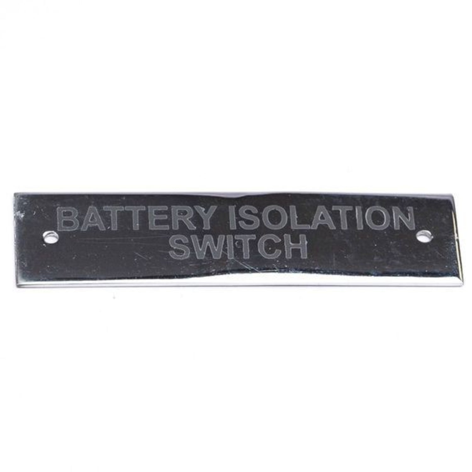 Chrome screen-printed 'Battery Isolation Switch' label 75 x 19mm.