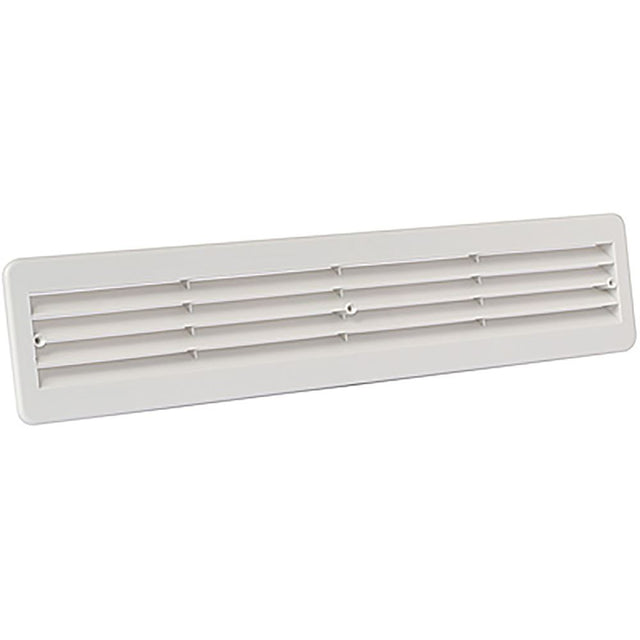 Plastic flush fitting air vent. Complete with mosquito nets. Vent (mm) 370 x 223, Cut out (mm) 335 x 185, 20mm thick. 400cm2 airflow.
