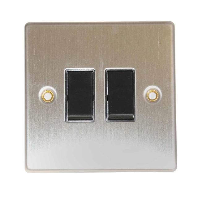 Round Edge Double 2 Way Switch Brushed Steel Finish and Black Inserts