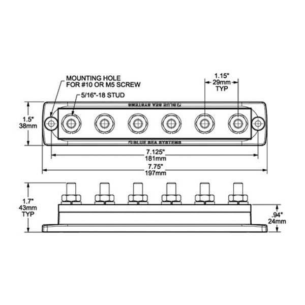 MAXIBUS 250A COMMON BUSBARS Now with insert moulded stainless steel studs and optional fully enclosed insulating base and cover. Insulating cover with breakouts for easy wire access Insulating cover meets ABYC insulation requirements CE marked Specifications: Continuous Rating: 250A AC/250A DC Voltage Maximum Operating: 300V AC/48V DC Mounting Holes: Accepts #10 (M5) Screws Bus Material: Tin-Plated Copper CDA 110/UNS C11000 8-22718 Spare Cover