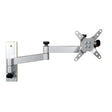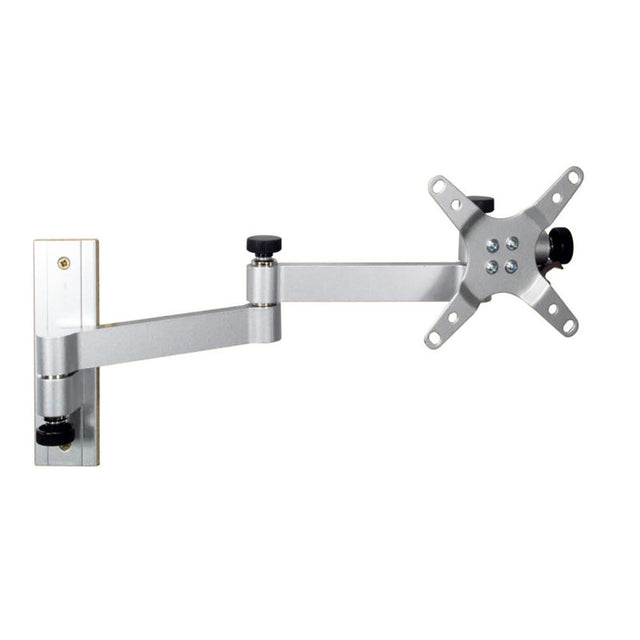 TV bracket on arm. Very versatile, Holes 75mm - 100mm (VESA) � 116mm x 152mm x 81 � 390mm � Carries TVs up to 15KG in weight � Bracket weight � 1.0 KG � Made from Aluminium (Colour: Silver)