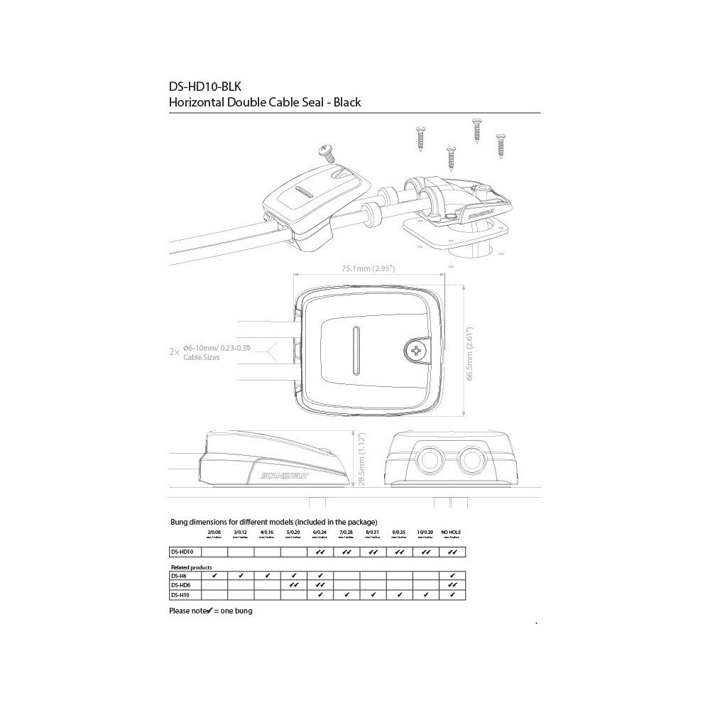 Scanstrut DS-HD10-BLK Black Horizontal Double Cable Seal 6 - 10mm