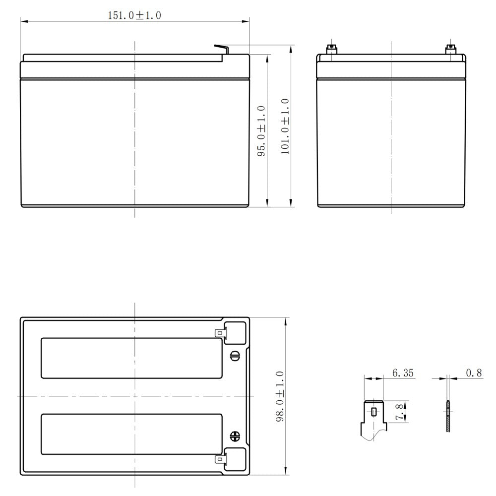 - Dimensions (Including Terminals): L151 x W98 x H101mm