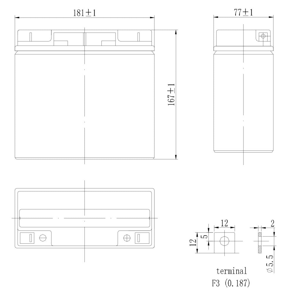 - Dimensions (Including Terminals): L181 x W77 x H167mm