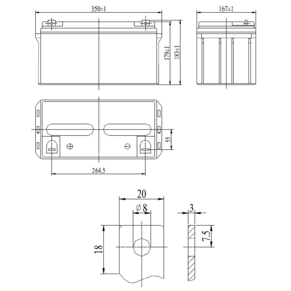 - Dimensions (Including Terminals): L350 x W167 x H183mm