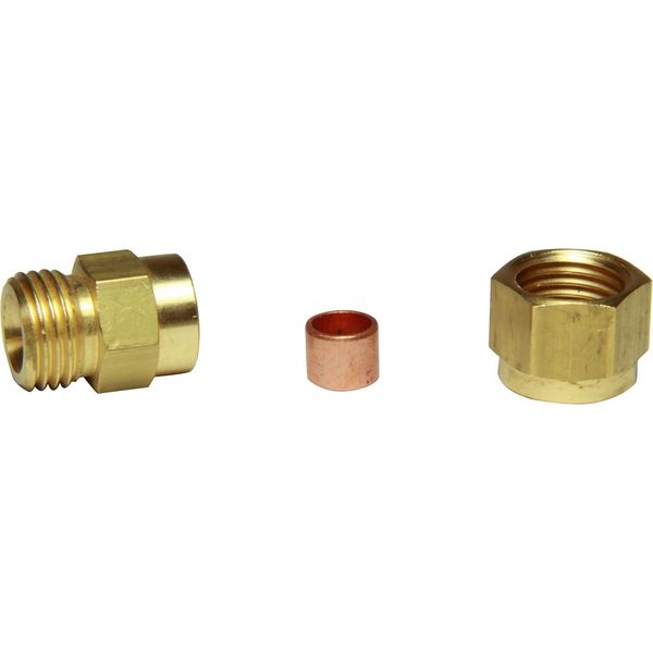 AG female stud compression coupling constructed from brass, supplied with compression olive and nut. The compression union has a 1/8" BSP female thread one end and a 1/4" compression fitting the other end.