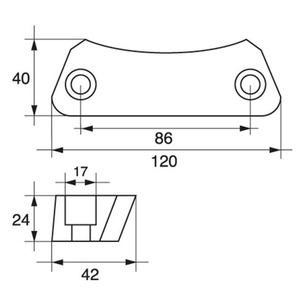 Gimbal Plate Length: 118mm Width: 37mm Height: 25mm Recess Size: 9.5mm Slot Size: 15mm For more dimensions please see diagram.