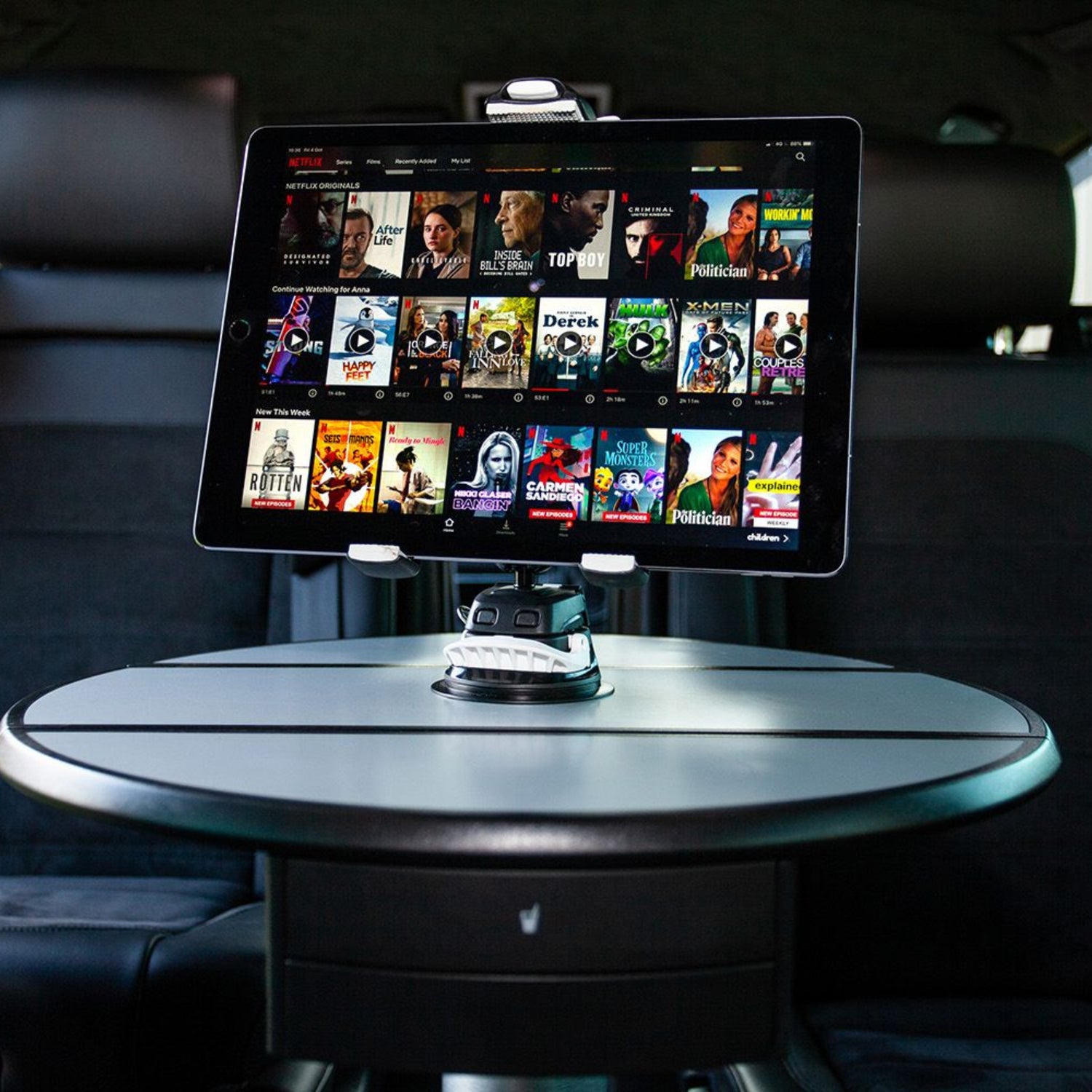 The Scanstrut ROKK mini is an adjustable mounting clamp kit designed for even the toughest on board applications. The RLS-508-405 is a universal tablet computer clamp suitable for all devices up to 125mm wide and 220mm high (4.9" - 8.6") and 1.2Kg in weight. As such this tablet mount will fit the iPad Mini to the iPad Pro sizes. It features a suction cup base which will mount to any flat surface with no drilling required.
