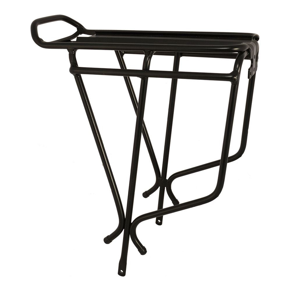 This non-disc alloy rack features a strong tubular alloy construction with integrated splash plate and a tough powder coated finish. Suitable for 26-28� wheel sizes.