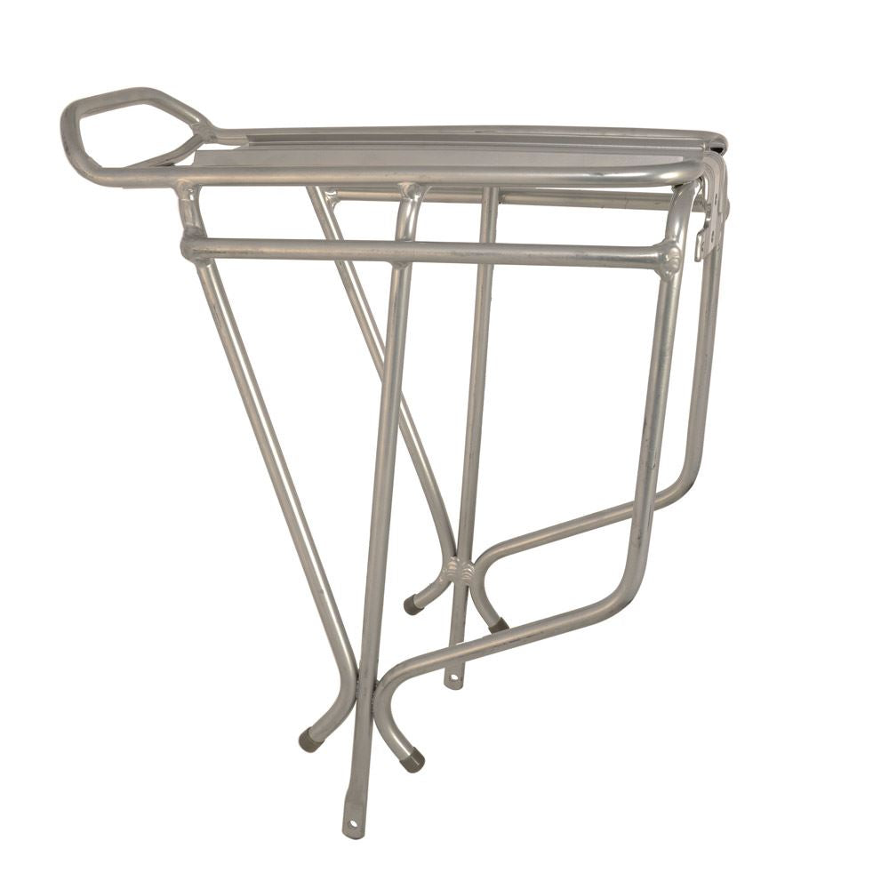 This non-disc alloy rack features a strong tubular alloy construction with integrated splash plate and a tough powder coated finish. Suitable for 26-28� wheel sizes.