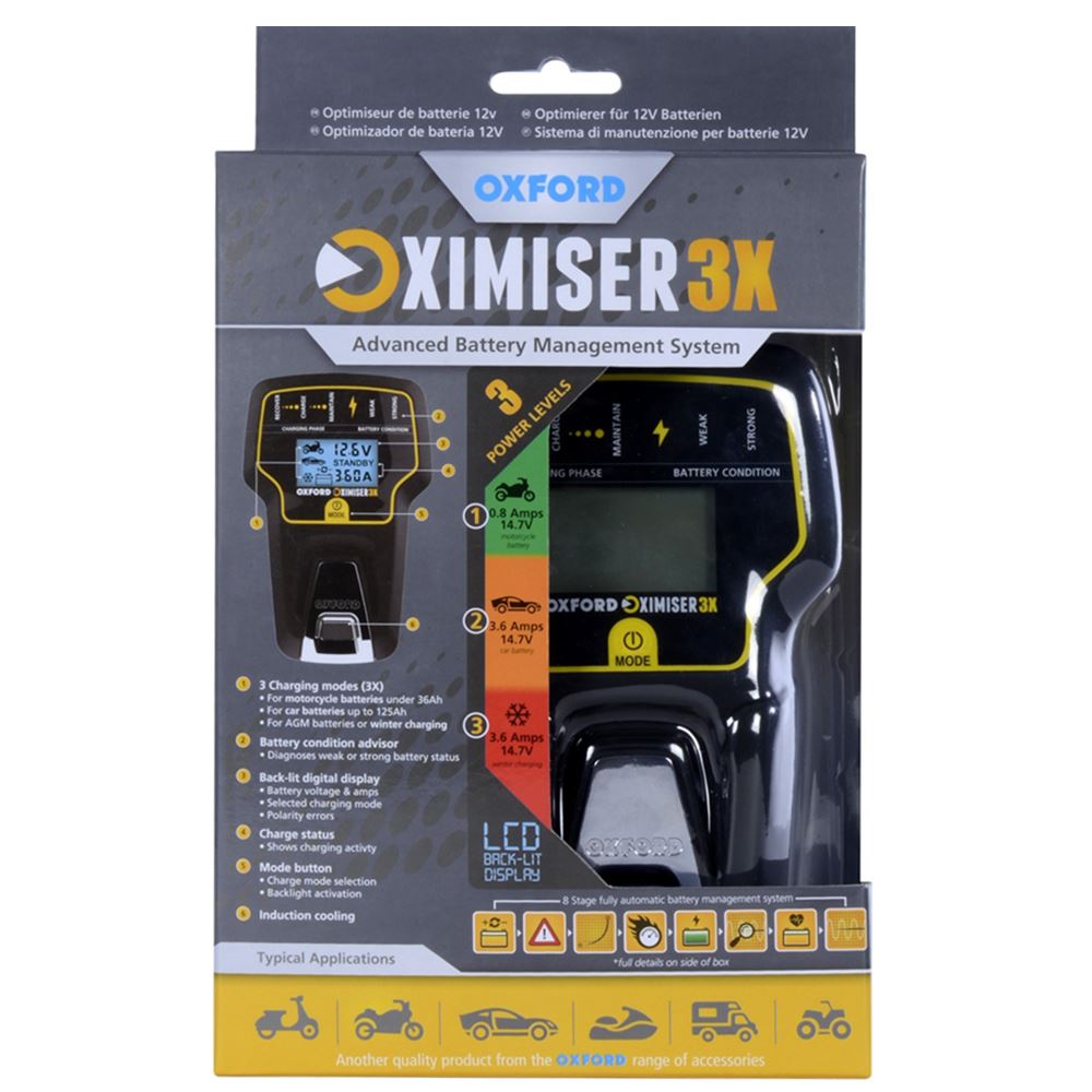 A fully automatic battery charger/optimiser from Oxford Products for motorcycle, car and leisure batteries up to 125Ah capacity. This versatile, multi-purpose charger is suitable for all lead-acid automotive battery types and also includes a Lithium (LiFePO4) setting. Maximum output current 3.6A. Key features include: � Completely designed and tested in the UK using high quality, long-life components � 2-year manufacturer�s warranty � Fully automatic 8 stage adaptive charging management, including polarity check and soft-start charging mode to improve recovery of deeply discharged batteries, even as low as 8 volts � LED indicators for charging mode and battery status � Fast and efficient charging in all modes keeps charge times to a minimum and helps reduce mains power consumption � Rubberised case for improved grip and durability � Includes wall mount bracket, 13A UK plug, ring terminals and connector, croc-clips and connector � Dimensions (H x W x D): 165 x 105 x 58mm