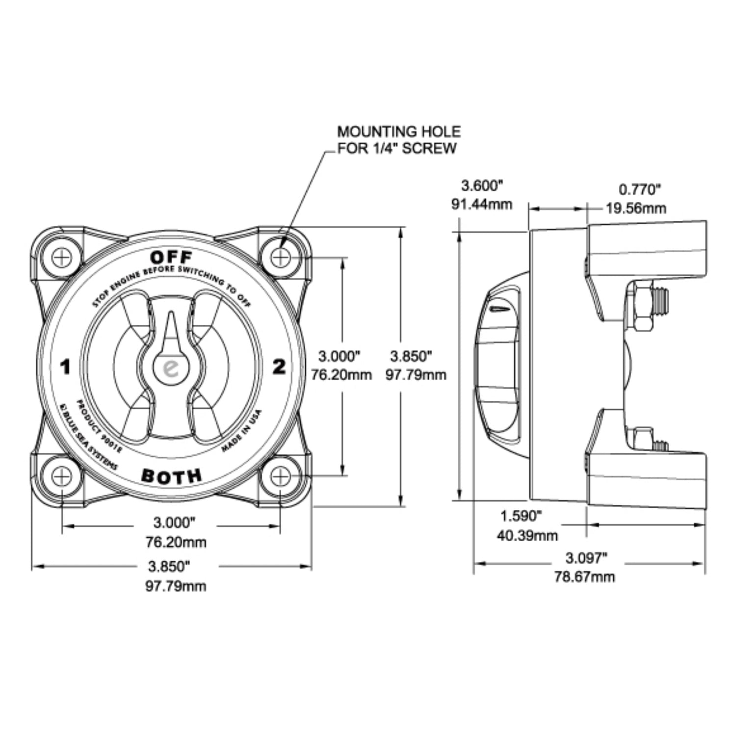 o HD BATTERY SWITCH (Heavy Duty) Up to 600 Ampere continuous rating for large diesel engines.