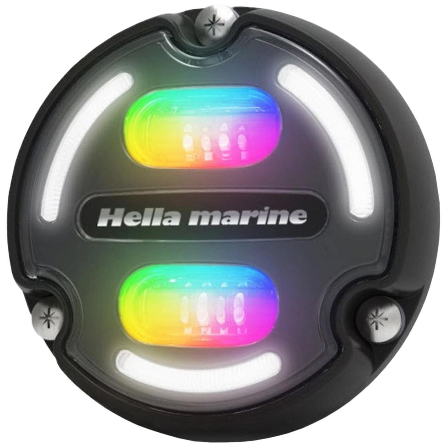 Hella Apelo A2 underwater lights are designed purely for underwater use. Hella 2LT 016 148-102 features RGB LEDs, with a black marine grade bronze housing and a white lens. The Apelo RGB underwater light allows you to take complete control and choose any colour you wish, in addition to the Blue/White settings and toggle to select constant or strobe light. Simply connect your lamps to an RGB lighting controller. Apelo A2 series lights feature Edge Light, which consists of 3 LED strips circling the outside of the lamp. It illuminates your transom with a unique effect whilst launching, retrieving or sitting on the boat lift. Light up during wash down, flushing engines or when loading gear. Edge Light shines bright enough in daylight without the brilliant intensity of the main underwater light, so your friends will not be blinded. - Vibrant blue, intense white illumination & Apelo RGB for complete control of the colour spectrum. - Edge Light technology - Optical Intelligence: Wide horizontal illumination with a narrow vertical angle for spectacular effect. - Completely sealed & electronically protected. - Robust surface mount design. - Advanced thermal management ensuring ongoing protection & no damage by operation out of the water. - Suitable for steel, fiberglass, timber & composite hulls.