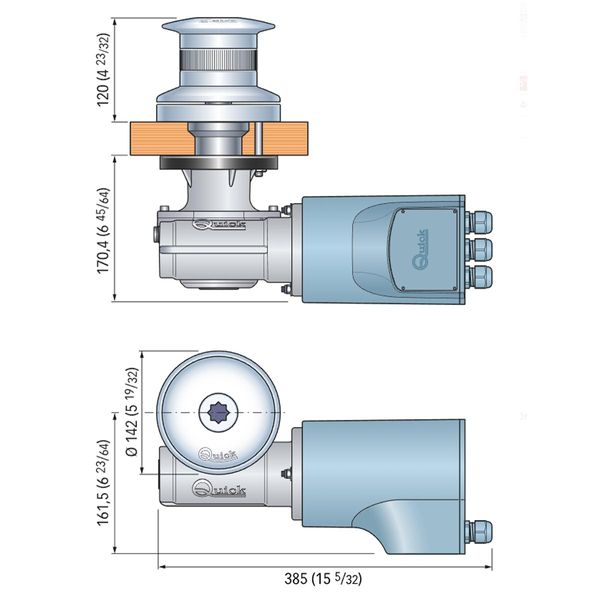 The Quick TB4 Tumbler 1512 horizontal capstan winch is suitable for boats from 16m to 22m (52 to 72ft). The capstan features a AISI 316 stainless steel base and drum (INOX steel) with an anodised aluminium gearbox and an IP67 watertight motor, making it well protected and durable. Supplied with a nylon handle control, anchoring has never been easier. The Quick capstan winch features a 142mm (5" - 19/32) diameter drum which is suitable for rope. This unit comes equipped with an IP67 watertight motor.