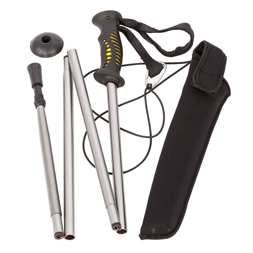 A new lightweight, slim profile aluminium wading staff, for reduced water resistance. The 4-section design locks firmly in place and tensions with a sliding collar, so the staff cannot collapse even if you catch the rubber cap between rocks. Remove the 'silent wading' rubber cap and you have a hardened steel tip for extra grip and it comes with an optional screw on �tip-cup� to spread the load in soft sand, mud or snow. Ergonomic rubber handle grip, with adjustable wrist strap and detachable, elasticated lanyard.�