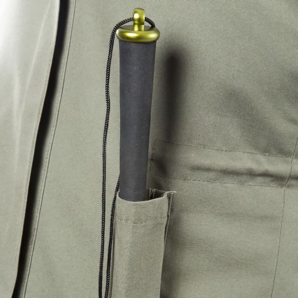 Made from a hard-wearing polyester cotton with a brushed outer surface. The shoulders are reinforced with matching corduroy which helps spread the load. Velcro epaulettes lock fishing bag straps in place so they don't slide off while walking. For extra warmth there is a thick brushed cotton check lining and all the perimeter hems are reinforced with leatherette trim for extra wear. An inside waist adjuster cord with toggle-locks ensures a snug fit.