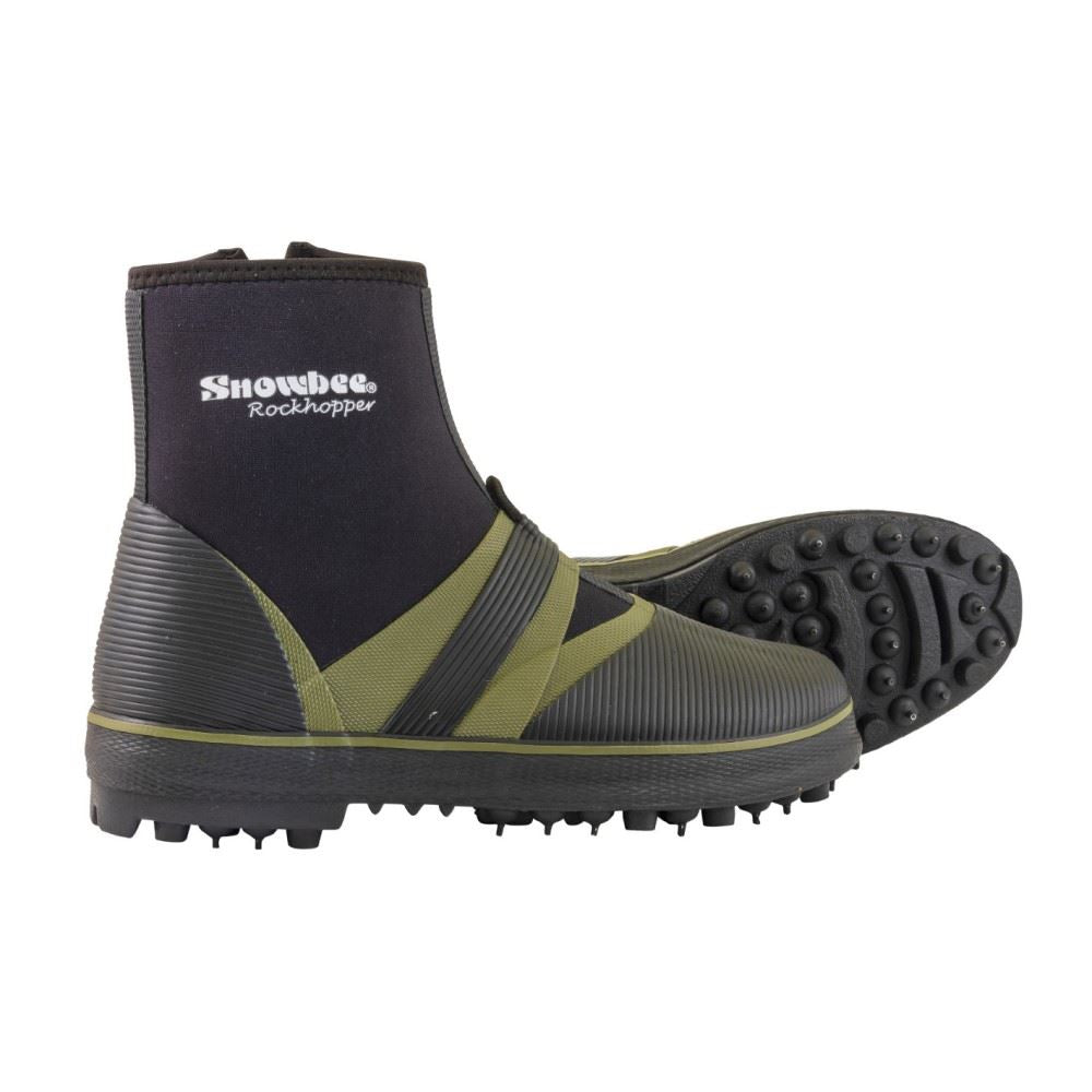 Snowbee's Rockhopper Wading Boots originated in Japan for rock fishing, where good grip is essential. Fitted with their unique Spike Sole, these boots offer the ultimate grip on any surface � particularly weed covered rocks, where other soles fail. The flexible, hardened steel spikes cut down through the weed, to grip the rock below and will even grip in icy conditions. Neoprene uppers with a side zip-closure they are equally suitable for �wet wading� in the summer months or overseas. Can be worn over stockingfoot waders, for the superb grip in rivers, or around the coast.