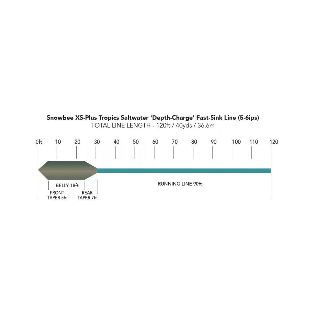 When you need to get down deep and fast with either short or long casts Snowbee's Tropics Depth-Charge delivers on all counts. The short sharp shooting head profile and fine running line will punch through a stiff wind effortlessly whilst the 5-6 ips fast-sink head will get your fly down fast to the strike zone. The colour change at the back of the head notifies the precise shoot point making distance casting effortless and the 90' of running line is easily drawn through the rings extending the cast to a long range 120' with minimum effort and needing only the short 30' head out of the tip ring to be able to do so.