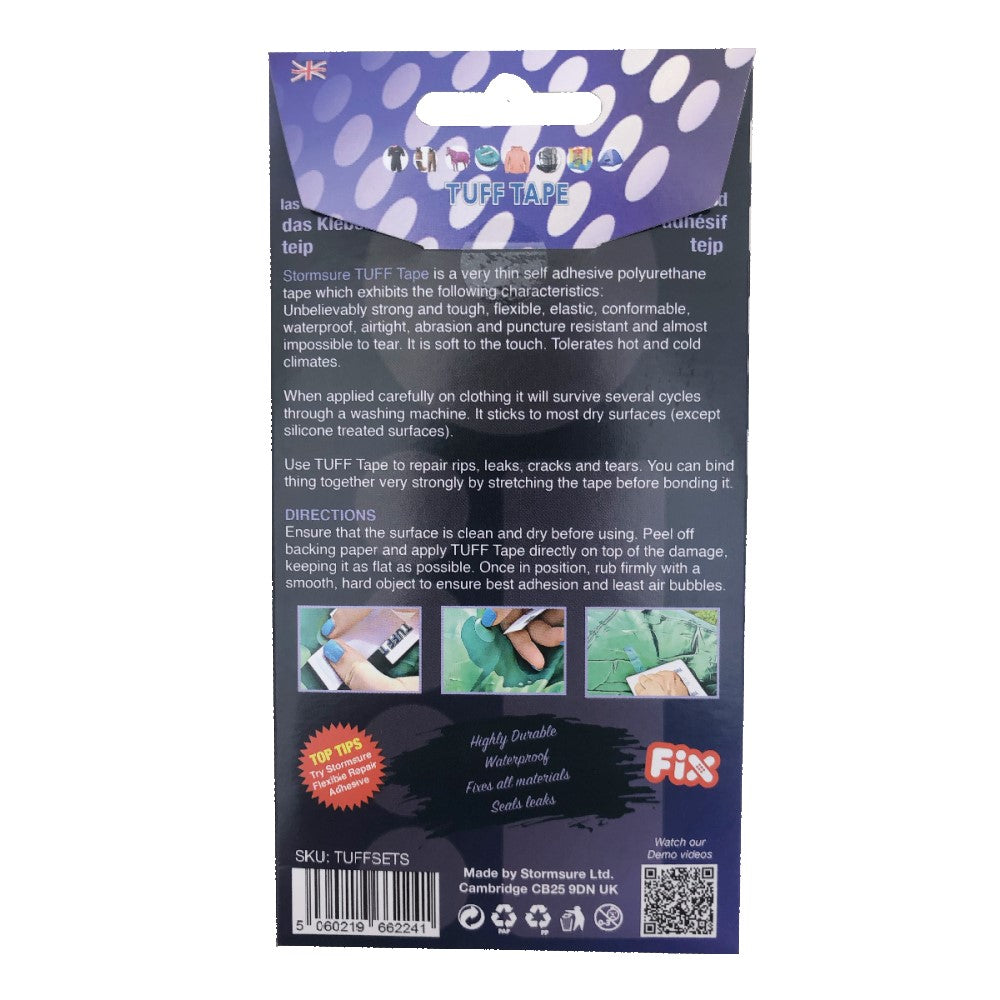Stormsure Tuff-Tape is one of those products that once you try it you don\'t know how you ever did without it. This kits consists of a selection of 6 self-adhesive clear PVC patches providing quick and easy repair to waders jackets boots etc. Sticks to just about anything even when wet. This means that if you accidentally cut or puncture your waders you can apply a Tuff-Tape patch even to wet waders to get you back fishing until yu can make a more permanent repair using Stormsure adhesive.