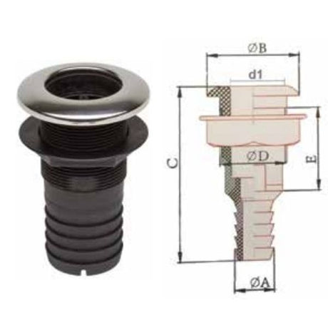 Can Plastic Transom Socket 74mm Diameter for 50mm Hose White