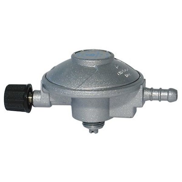 Butane Campingaz regulator. Specs: o Gas: Campingaz o Inlet: M16 x 1.5 LP o Outlet: 10mm nozzle o Inlet pressure: Max (bar) 0.3 // Min (bar) 7.5 o Operating Mbar: 29 o Capacity: 0.8 kg/hr // 11 kW/hr o Btu/hr: 37,600 PLEASE NOTE: This product is packaged for resale.