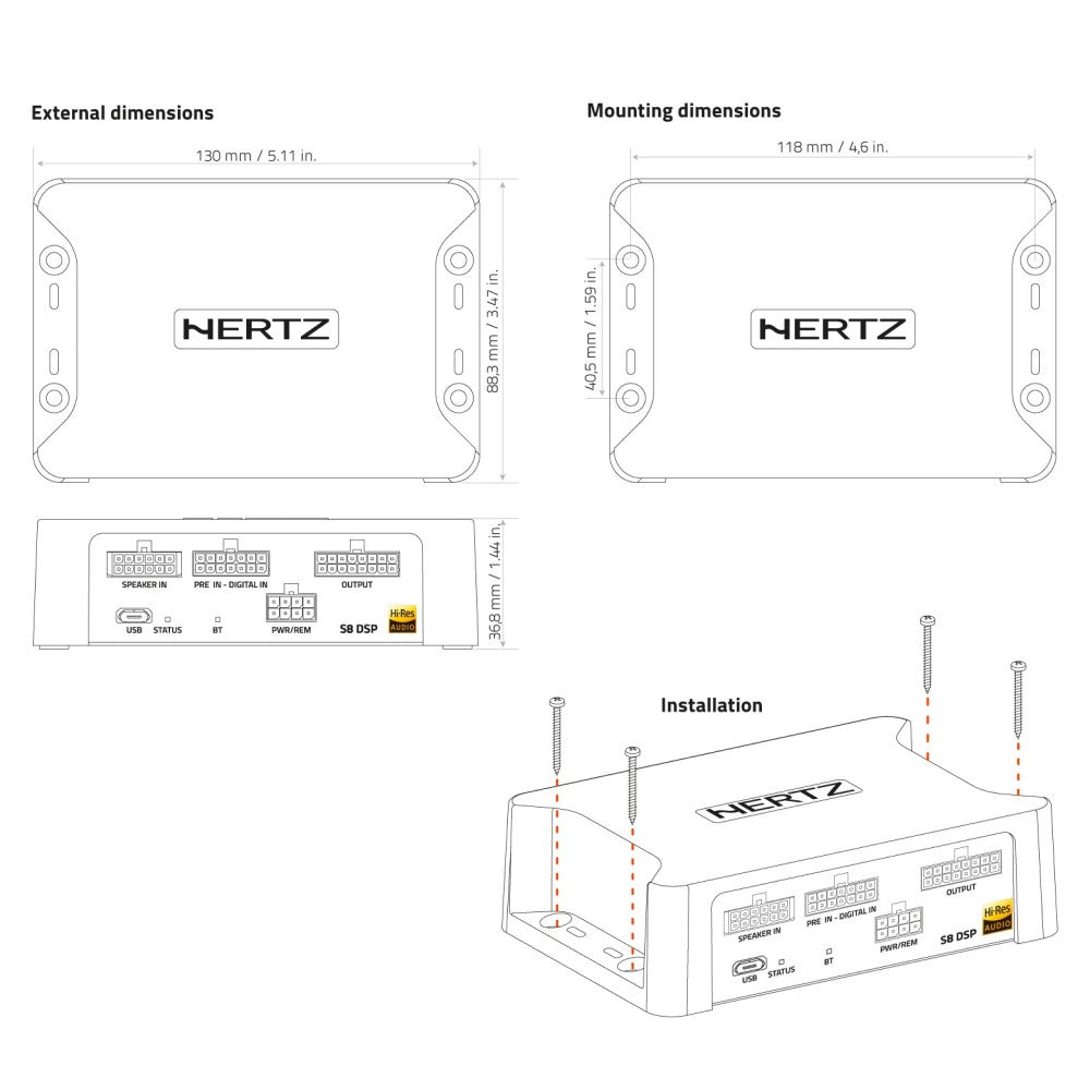 The ultra-compact S8 DSP is the perfect solution for integrating any OEM source into any audio upgrade project for cars motorcycles and boats! S8 DSP is a distilled essence of technology at the service of the highest audio quality in a corrosion-free case cast in metal and composite materials.