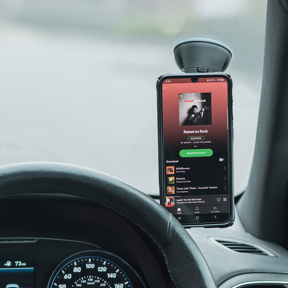 The CLIQR Suction Mount can be applied to any non-porous surface. The integrated pivot arm allows for 360 degree rotation for the ideal viewing angle.