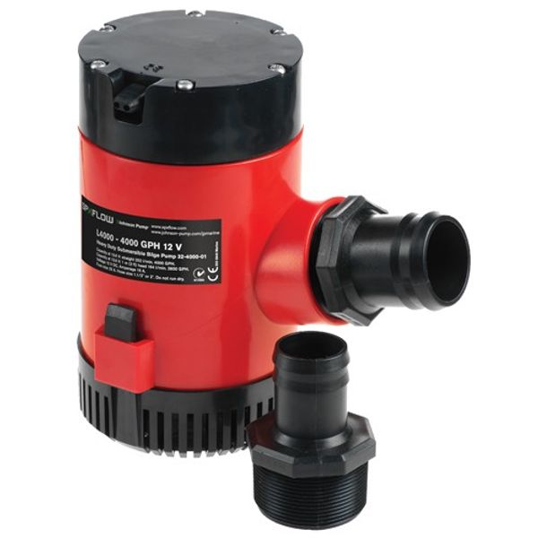 The L4000 high capacity, heavy duty bilge pump has been developed by Johnson Pump as the premier pump in our submersible bilge pump range. Featuring a robust motor design, mechanical shaft seal, high impact ABS plastic and unique threaded port design, the L4000 will out perform all other comparable pumps on the market.