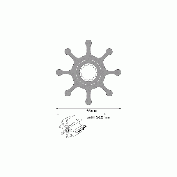 The genuine Johnson neoprene flexible impeller is suitable for general water-pumping duties such as engine cooling, water transfer, wash down and bilge water pumping purposes. The Johnson flexible pump impeller has eight blades and is supplied complete with gaskets, O-ring, lubrication gel and instruction manual to aid installation of the impeller into the flexible impeller pump. The Johnson 09-1028B flexible pump impeller is designed to be installed to some of the F7 range of Johnson Pumps, including the following: - F7B-3, F7B-3000, F7B-3020, F7B-3030, F7B-30007, F7B-30207 and F7B-30307 pump models: 10-22045-1, 10-22054-1, 10-24209-1, 10-24209-3, 10-24209-5, 10-24209-7, 10-24209-9 & 10-24209-11. - F7B-5, F7B-5000, F7B-5001 (MC), F7B-5007 and F7B-50017 (MC) pump models: 10-22342-, 10-24071-17, 10-24071-98, 10-24071-99, 10-24116-98, 10-24116-99, 10-24556-01, 10-24556-02, 10-24577-13, 10-24577-19, 10-24577-99, 10-24578-03 & 10-24578-04. - F7B-8, F7B-803, F7B-8001, F7B-8007 and F7B-8037 pump models: 10-24070-1, 10-24070-3, 10-24070-5, 10-24070-7, 10-24070-9, 10-24070-10, 10-24070-51, 10-24114-1, 10-24572-01, 10-24572-05, 10-24572-13, 10-24572-17, 10-24572-51, 10-24572-53 & 10-24572-54. - F7B-9, F7B-902, F7B-903, F7B-9000, F7B-9001, F7B-9002 and F7B-9030 pump models: 10-11236-2, 10-11236-3, 10-13064-1, 10-13064-2, 10-13142-01, 10-13142-02, 10-13374-01, 10-21876-1, 10-21876-2, 10-22139-1, 10-22144-1, 10-22147-1, 10-22335-2, 10-22335-3, 10-22335-4, 10-22354-1, 10-22354-2, 10-24014-1, 10-24014-2, 10-24014-3, 10-24014-4, 10-24014-5, 10-24014-6, 10-24014-7, 10-24017-1, 10-24017-2, 10-24017-3, 10-24017-4, 10-24020-1, 10-24020-2, 10-24028-1, 10-24048-1, 10-24057-1, 10-24061-1, 10-24061-2, 10-24061-3, 10-24061-4, 10-24103-1, 10-24103-2, 10-24126-1, 10-24126-2, 10-24126-3, 10-24127-1, 10-24127-2, 10-24127-3, 10-24127-10, 10-24139-1, 10-24139-2, 10-24139-3, 10-24139-4, 10-24139-5, 10-24139-7, 10-24179-1, 10-24179-2, 10-24183-1, 10-24218-1, 10-24235-1, 10-24235-2, 10-24235-3, 10-24244-1, 10-24244-2, 10-24253-1, 10-24253-2, 10-24253-3, 10-24277-1, 10-24277-2, 10-24277-3, 10-24277-4, 10-24277-5, 10-24280-1, 10-24280-2, 10-24292-01, 10-24305-01, 10-24329-11, 10-24338-01, 10-24338-02, 10-24349-01, 10-24365-01, 10-24365-02, 10-24386-01, 10-24390-01, 10-24394-01, 10-24394-02, 10-24394-03, 10-24398-01, 10-24398-02, 10-24428-01, 10-24431-01, 10-24445-01, 10-24475-01, 10-24475-02, 10-24524-01, 10-24524-02, 10-24524-03, 10-24524-04, 10-24524-05, 10-24535-01, 10-24542-01, 10-24567-01, 10-24580-01, 10-24599-01, 10-24621-01, 10-24630-01, 10-24630-02, 10-24637-01, 10-24654-01, 10-24666-01, 10-24666-02, 10-24667-01, 10-24748-01 & 10-24753-01. - John Deere RE47016, RE49556, RE503068 and RE525563 pumps. The Johnson 09-1028B can be used to replace the Jabsco 17937-0001 and 920-0001 Europe / USA, Sherwood 18200 flexible impellers. For applications containing diesel or light oils, use Johnson nitrile impeller 09-1028B-9. Engine Suitability for the Johnson 09-1028B Impeller: - Bayliner 105, W04C-T120/3000, W04D & W06D-T1 250/3000 engines (10-24253-1, 10-24365-02 & 10-24253-2) - Beta Marine BSD 333, BSD 678, Dover 2725, Dover 2726 T & Dover 2726 TIM engines (10-24139-4 & 10-24244-1) - Bomac Marine 6 cyl engines (10-24139-5) - Bukh 4K 105M & 6K 105M engines - C-Power 2500, 2720, 6.675, 2722-series 4 cyl, 2725-series 6 cyl, 4.254, 4.444, 6.216, 6.363TC/TCIC, 6.380, 6.666, BSD 31, BSD 4 & BSD 6 cyl engines (10-24139-1, 10-24139-4, 10-24244-1 & 10-24445-01) - Caterpillar 3208 engines - Cummins V504M engines - Dolphin Marine 2726TIM 6 cyl, 2726TM 6 cyl, Adhara, FSD 2.5, Super Saiph II, Super Saiph 3 & Vega engines (10-24070-1, 10-24139-1 & 10-24139-3) - Ford 2723, 2725, 2700 Turbo, 2704ET, 2726T, 2726TIM, 2726TM, 2728TIM, BSD333, BSD444 & BSD666 engines (10-24139-1, 10-24139-3 & 10-24244-1) - Herald Marine 6.150, 6.170, 6.178T & Magnum 300 engines (10-24014-1) - High Power Marine 2715E engines (10-24139-1) - Marine Craft 2653-5E HC engines (10-24070-1) - Mercedes OM352, OM355, OM360, OM401 & OM402 engines (10-24209-1) - Mercraft 150 & 180 engines (10-24139-1) - Mercury Marine 4 cyl engines (10-24253-1) - Mermaid Marine 397, 595, 2722 4 cyl, 2723 4 cyl, 2724 4 cyl, 2725 4 cyl, 2726 6 cyl, 2727 6 cyl, 2728 6 cyl, 595 TP, Flat Four, Flat Six, Majestic, Manta, Mariner, Melody, Mistral, Monarch, Turbo Four & Turbo Plus engines (10-24139-1 & 10-24139-4) - Nanni 4.220 HE, 4.230, 4.240, 4.380, 5250 TDi, 5.280 HE, 5.300 T, 6.280 HE, 6.570 6 & 6.570 T engines (10-24070-3, 10-24179-1, 10-24179-2, 10-24386-01 & 10-24542-01) - Norfolk Marine 2723 engines (10-24139-3) - Perkins 6.305 6 cyl, 6.354 6 cyl, 6.354DM, 6.3540M, 6.3543M, 6HD 135/15D & T/H/HT 6.354LL engines (10-24014-1 & 10-24014-4) - Sea Wasp SW 18400- 23 KVA, LATE SW 20000- 25 KVA-, LATE SW 24000-30 KVA-, SW 36000- 45 KVA- & SW 42000- 52.5 KVA- engines (10-24127-1) - Tempest 0.208, 6.150, 6.180 & Sea Lord 5.66 engines (10-24014-, 10-24139-1 & 10-24139-2) - Thornycroft 230, 238, T238, 345, 358, T358, TA 358, 360, 360/l, T360/1, 400 & T400 engines (10-24014-1, 10-24139-1, 10-24329-1 & 10-24329-11) - Vetus C4, C6, DT(A)43, DT(A)44, DT(A)64, DT(A)66, DT(A)67 & P 4.25 engines (10-24218-1, 10-24734-04 & 10-24734-05) - Volvo Penta 1113 BR, AD31A, AD31B, AD41A, AD41B, AQ40DP, AQ70D, AQAD30A, AQAD31A, AQAD41A, AQD19, AQD27, AQD29, AQD30, AQD30DP, AQD32A, AQD40A, AQD41A, AQD70B, AQD70C, AQD70D, D4, D41A, D41B, IPS350, IPS400, KAD42A, KAD42P, KAD42DP, KAD42DPK, KAMD42A, KAMD42P, MD19, MD27, MD29, MD30, MD30A, MD31, MD31A, MD32A, MD40A, MD42, MD47A, MD47B, MD47C, MD50A, MD67C, MD70A, MD70B, MD70C, MD96B, MD100B, TAMD30, TAMD30A, TAMD31, TAMD31A, TAMD31B, TAMD41, TAMD41A, TAMD41B, TAMD60, TAMD60A, TAMD60B, TAMD60C, TAMD70, TAMD70B, TAMD70C, TAMD70D, TAMD70E, THAMD70, THAMD70B, THAMD70C, TIMD96B, TMD30A, TMD31, TMD31A, TMD31B, TMD40A, TMD40B, TMD40C, TMD41A, TMD41B, TMD60B, TMD70B, TMD70C & TMD100A engines (10-11236-1, 10-11236-2, 10-22144-1, 10-22335-1, 10-22335-2, 10-24017-1, 10-24020-1, 10-2