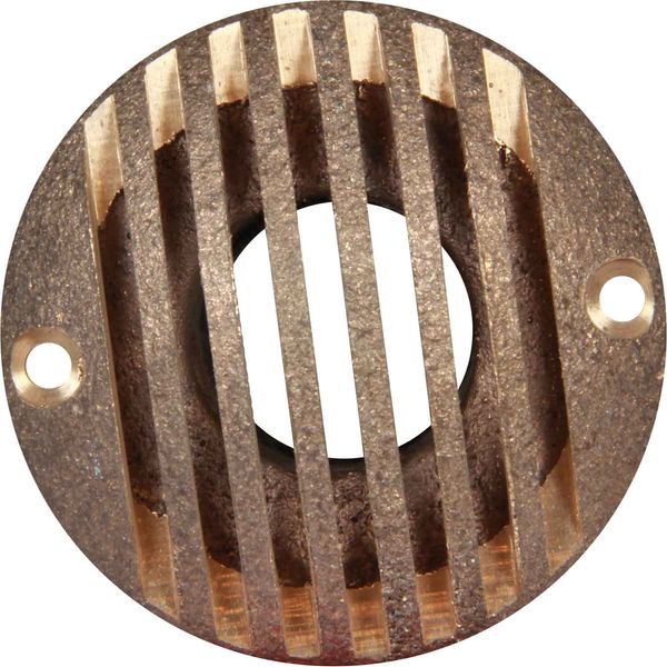 Maestrini scoop strainer made from bronze, with a round fully slotted grating. This scoop is designed for raw water intake systems, such as those used in static intakes like toilets and gensets. It fits through the hull with the grating on the outside and the male threaded pipe leading inside, usually to a valve to open and close the intake. The scoop grating can be secured to the hull using two screw although it is recommended to use a marine sealant as well. The scoop is also supplied with a back locking nut and washer. Important note: All fittings used for through hull applications must be correctly electrically bonded to ensure protection from electrolytic corrosion. Bronze is highly suitable for below waterline through hull applications.