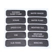 The Blue Seas extended DC panel label set contains 120 labels constructed from a reinforced weatherproof material and are suitable for the Blue Seas range of Contura weatherproof fuse panels, ST Glass fuse blocks, all raised roca and toggle circuit breaker panels. The available labels in the package are detailed below. (BLANK) 12 VOLT DC OUTLETS 12 VOLT DC AFT CABIN AFT HEAD ALARM SYSTEM ANCHOR WASH DOWN BAIT PUMP BILGE ALARM BILGE PUMP 2 BRIDGE LIGHTS CABIN 2 LIGHTS CABIN 3 LIGHTS CABIN 4 LIGHTS CABIN FAN CABIN LIGHTS CB RADIO CELLULAR PHONE CHART LIGHT CHART PLOTTER COCKPIT LIGHTS COLOR SOUNDER COMM ELECTRONICS DC LIGHTS DC MAIN DC OUTLETS DC REFRIGERATOR DC SUB PANEL DECK LIGHTS DECK LIGHTS AFT DECK LIGHTS FWD DEPTH RECORDER DEPTH/SPEED DESALINATOR DIMMER DINING AREA LIGHTS DOCKING LIGHTS EMERGENCY LIGHTS ENGINE ROOM BILGE ALARM ENGINE ROOM LIGHTS EXTERIOR LIGHTS FAN 2 FIRE ALARM FISHING LIGHT FLOOD LIGHTS FLYBRIDGE ELECTRONICS FLYBRIDGE LIGHTS FRESH WATER PUMP FRESH WATER WASH DOWN GALLEY LIGHTS GPS/PLOTTER HAILER HAM RADIO HEAD HEAD LIGHTS HEAD LIGHTS 2 HEATER 2 HELM ELECTRONICS HELM GAUGES HELM INSTRUMENTS HIGH WATER ALARM HOLDING TANK HOLDING TANK ALARM HOLDING TANK PUMP INSTRUMENT LIGHTS INSTRUMENTS INTERCOM INTERIOR LIGHTS LIGHTS 2 LIVEWELL LOG LORAN MAIN CABIN MAP LIGHT MAST LIGHTS NAV STATION ELECTRONICS NAV STATION GUAGES NAV STATION INSTRUMENTS NAV STATION LIGHTS NAVIGATION ELECTRONICS NAVIGATION INSTRUMENTS NAVIGATION LIGHTS RACK LIGHTS RADIO SALOON SALOON LIGHTS SAT/COM SAT/NAV SATELLITE DISH SEARCHLIGHT SEAWATER TEMP SEAWATER WASH DOWN SECURITY SYSTEM SHOWER SUMP PUMP SONAR SPEED/LOG SSB SUB PANEL SUMP PUMP TELEPHONE SYSTEM TRACK LIGHTS TRANSFER PUMP TRIM TABS TV TV/VCR UTILITY VIDEO PLOTTER WATER ALARM WATER MAKER WATER PUMP WEATHER INSTRUMENT WINCHES WIND INSTRUMENTS WINDEX LIGHT WIPER PORT WIPER STBD WIPERS