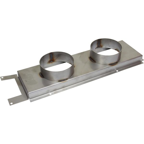 This hot air unit can be used for both hot cabin heating and windscreen demisting. Designed on the same principle as a vehicle heater but larger and to marine material specification for connection to your closed circuit fresh water cooling system. As heat loss in pipes from engine is negligible the unit is best sited near to the cabin. Universal mounting normally below engine header tank. The radiator, fan and electric motor are housed in rectangular S/S body. Remote external air supply can by used by S/S adaptor which fits rear of heater to take 2 x 89mm ID ducting, as illustrated right.