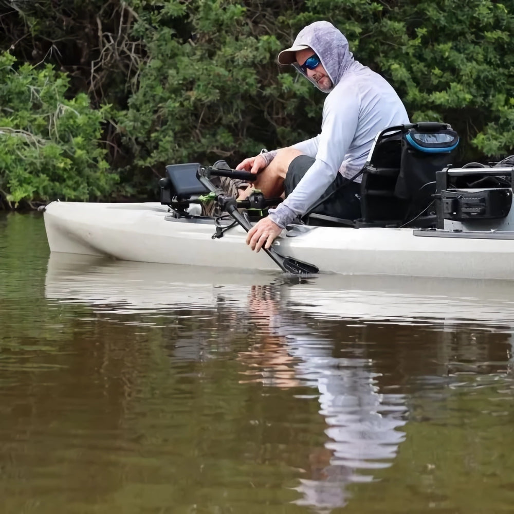 Introducing the Railblaza Hexx Live Pole, The perfect fishing companion. Easily mount this transducer rod at a perfect 76.8 cm (30") length on your inflatable boat or float tube. With unparalleled precision and convenience, this rod makes fishing with a live sonar incredibly enjoyable. A lever allows you to swing the transducer out of the water and rotate the entire pole on the boat. Get ready to land your catch with this top of the line product.