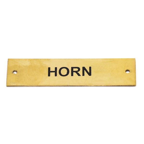Brass screen-printed 'Horn' label 57 x 12mm.