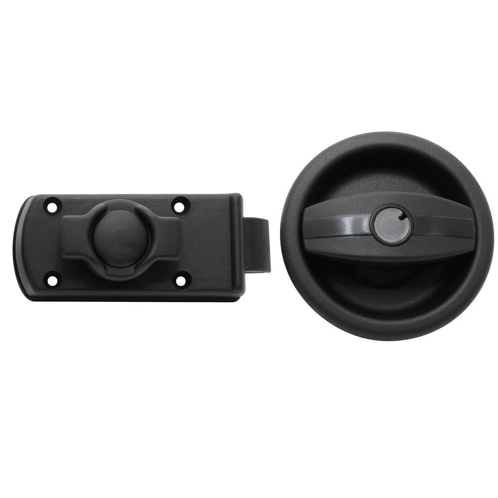 Very popular lock system in the market-place. Both circular handle and bolt mechanism are supplied as a kit. Twist handle is no longer supplied with barrel and 2 keys. Black, right hand. If barrel and keys are required then please order 1 x 72289.