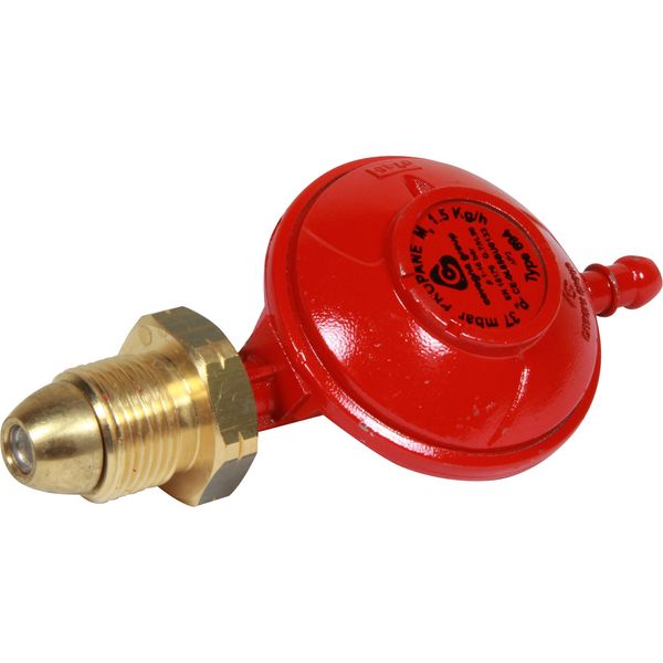Propane gas regulator, used to deliver a steady supply of gas to a single appliance which connects to the bottle. The inlet connects to the propane supply, where pressure can fluctuate, and ensures that excessive gas pressure is not delivered which could cause damage. The regulator works by setting the outlet pressure lower than the inlet pressure, and is suitable for use with propane 37P gas. It is vital that all gas installations are checked by a qualified gas engineer prior to use to ensure safety on board. Please Note: This gas regulator is only recommended for use in fresh water installations - it is NOT manufactured to marine standards. Please see our range of GasBOAT regulators for gas equipment that are approved (ISO 10239:2014 and BS EN 16129 M 2013) for use in all marine installations.