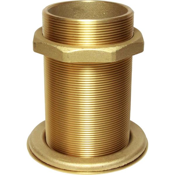 The Maestrini threaded through hull skin fitting is made from brass. A skin fitting connects to a threaded pipe and is designed for through hull applications. This skin fitting features an inclined head style to create less drag and is supplied with a fixing nut. The brass skin fitting has a 3" BSP thread that measures 148mm in length.