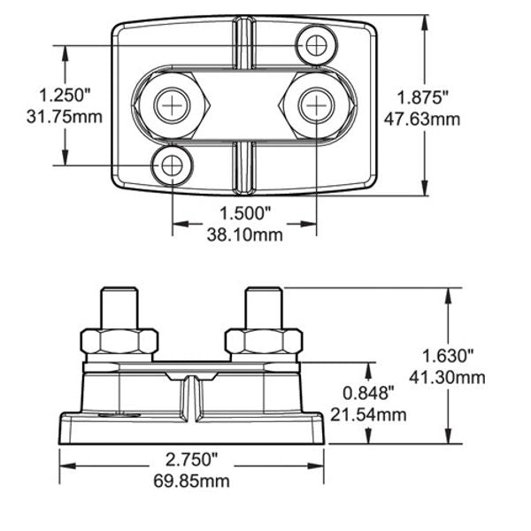 Specifications: Continuous Rating: Amperage rating is determined by wire amperage capacity connected to the PowerBar up to 600A Max Voltage Operating: 48 Volts DC Mounting Holes: Accepts #10 (M5) Screws Bus Material: Tin-Plated Copper