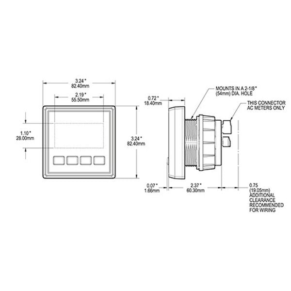 Performs comprehensive monitoring of four critical systems in one compact organic LED digital monitor DC System Monitoring (up to two batteries) One input monitors the DC voltage, state-of-charge, current for one battery bank and another input monitors the voltage of an additional battery bank. Alarms include high and low voltage, high current, and low battery. AC System Monitoring The VSM monitors a single AC voltage, current, and frequency. Alarms include high and low voltage, high current, and high and low frequency. Bilge & Tank Monitoring The M2 VSM has two inputs that can be configured as a bilge or tank monitor. When configured as a bilge input, monitoring functions include pump active, cycle count in the last 24-hours, average cycles in a typical 24-hour period, and total cycles. High alarms can be set for both the minutes of run time in the last hour as well as the number or cycle counts in the last 24-hours. When configured as a tank input, tank status can be represented in both capacity (gallons or litres) or as a percentage of capacity. Custom tank shapes can be auto-calibrated or programmed. Both high and low level alarms can be set for all tanks. Regulatory Monitor face is IP66 - protected against powerful water jets, when installed according to instructions (see inside back cover). DC Specifications Nominal System Voltage: 12V, 24V, 36V, 48V Operating Voltage: 7-70V Minimum Current Draw: 15mA @ 12V, display off, 8mA @ 24V, display off Voltage Accuracy: +/- 1% Current Range: -500A to 500A Current Accuracy: +/- 1% AC Specifications: Nominal System Voltage: 230V @ 50Hz, (Europe) Operating Voltage: 40-300V Voltage Accuracy (RMS): +/- 1% Current Range: 0-150A Current Accuracy (RMS): +/- 2% Frequency: 40-90Hz Tank Senders Supported: 10-180 �� VDO, 240-33 �� Teleflex Blue Sea Systems Ultrasonic Tank Senders (sold separately)