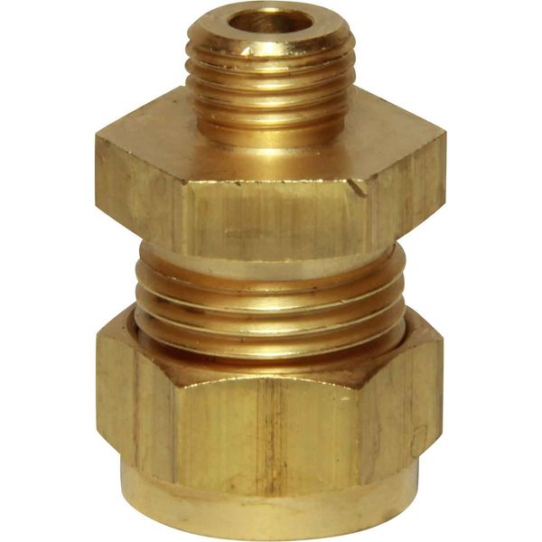 AG male stud compression coupling constructed from brass, supplied with compression olive and nut. The compression union has a 1/4" BSP male thread one end and a 1/2" compression the other end.