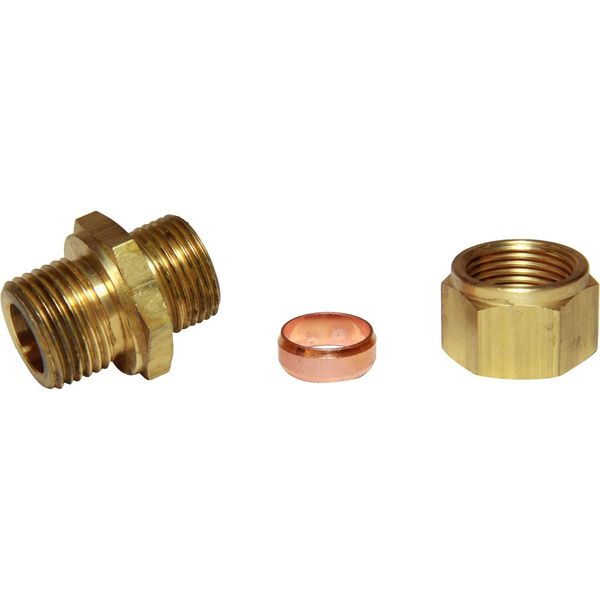 This AG male parallel stud coupling is constructed from brass with a 1/2" BSP male thread one end and a 15mm compression connection the other end.