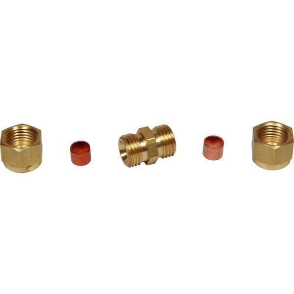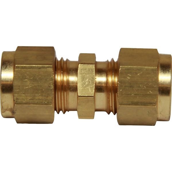 Compression pipe fitting to join together two compression tubes or pipes. This coupling features a 1/4" compression fitting each end and is supplied with copper compression olives and compression nuts.